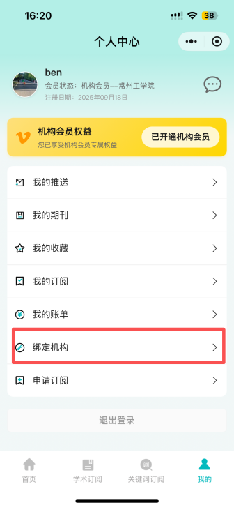 如果在校园网ip范围内会自动认证为机构用户,在校园网外登录完成后,点击我的->机构认证,输入机构邀请码和学工号即可认证为机构用户